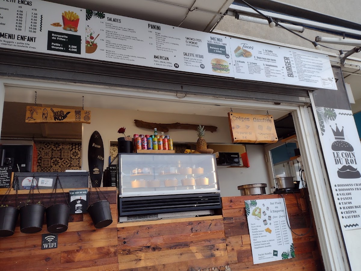 From a reviewer’s perspective, the menu at Le Coin Du Roi feels deliberately simple yet well-calibrated for its seaside setting, focusing on comfort, refreshment, and familiar pleasures. The presence of Crêpes anchors the menu with a timeless French staple, offering a versatile option that works equally well as a light meal or a sweet finish. Drinks play an equally important role: Bière and Sangria stand out as easygoing choices that suit both daytime breaks and relaxed evenings by the quay, reinforcing the casual, social spirit of the place. For those seeking something more filling, Nos Tacos En Préparation brings a modern, street-food-inspired touch, adding variety and satisfying heartier appetites without overcomplicating the menu. On the lighter side, Salade Mozzarella provides balance, appealing to guests who prefer freshness and simplicity amid richer options. Coffee lovers are well catered for with Café Et Chocolat, ideal for short pauses or after-meal moments, while Café Liégeois rounds out the dessert offerings with a classic, indulgent note that blends coffee and sweetness. Taken together, these highlighted items show a menu designed less to impress through complexity and more to deliver reliable, enjoyable flavors that match the relaxed atmosphere of its waterfront location.
